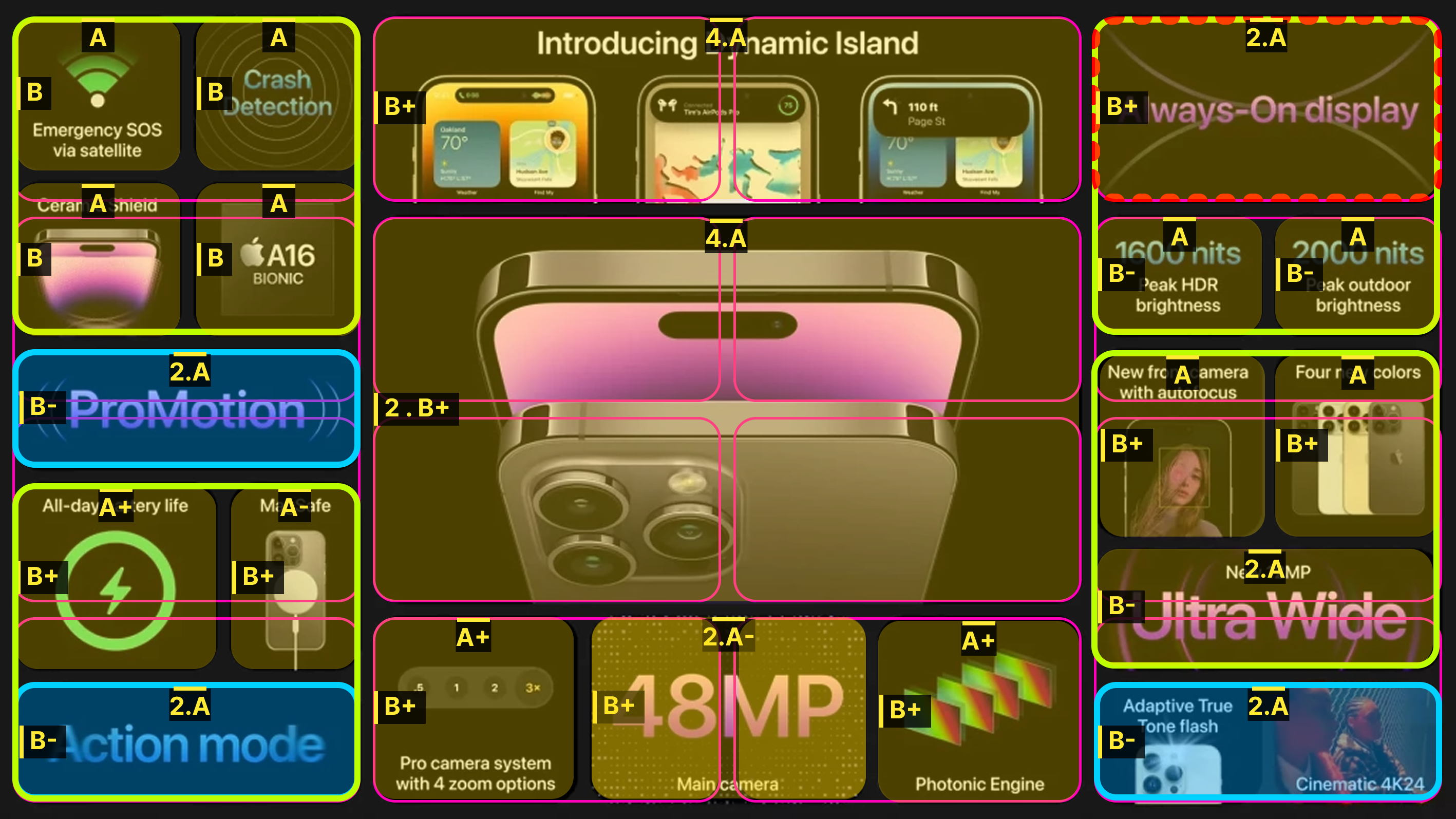 Несколько лет подряд Apple финализирует презентации бенто-сеткой из преимуществ и характеристик своих новых продуктов, собирая на одном слайде всё внимание аудитории.